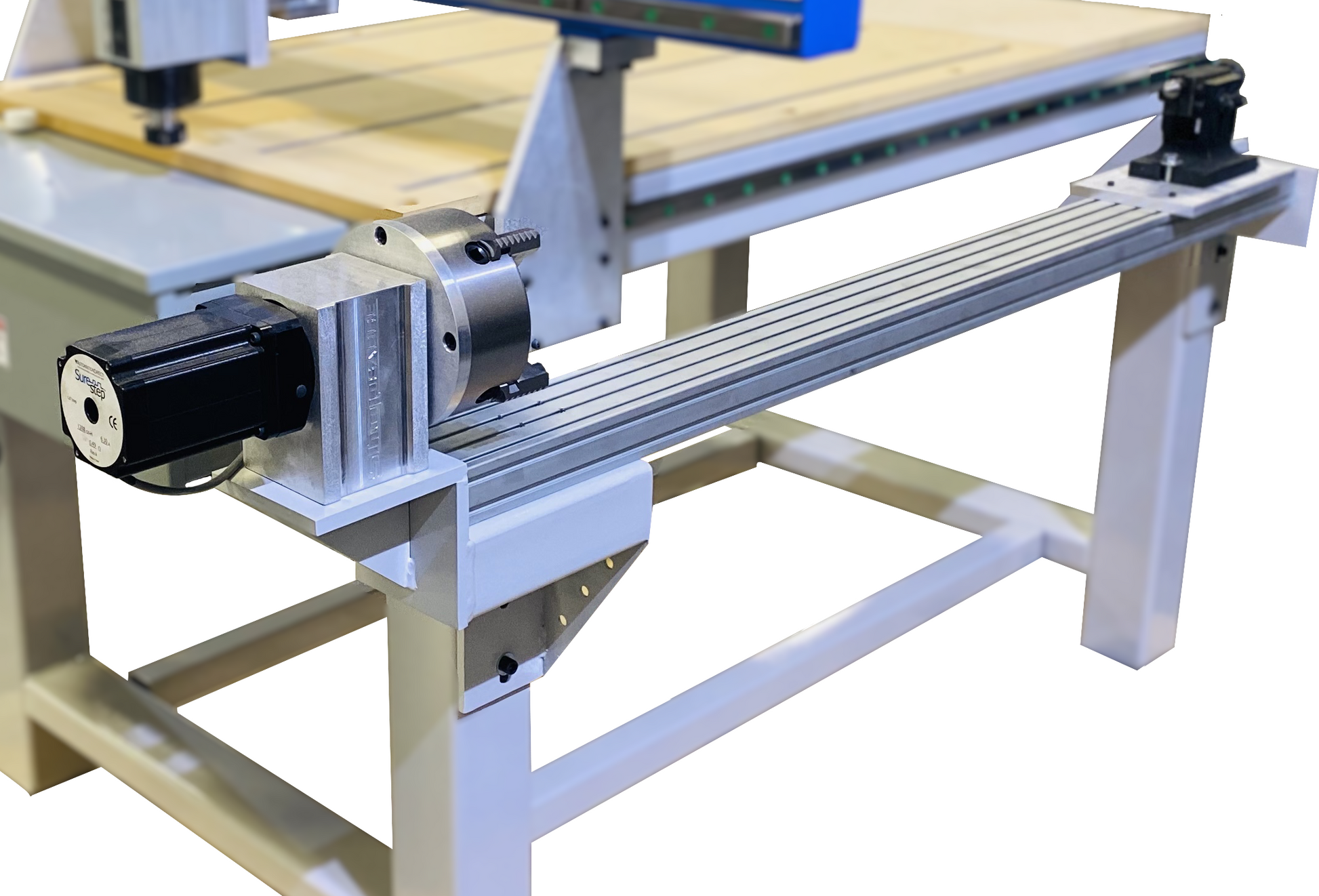 This feature is constructed from a robust 4-jaw steel lathe-style chuck head powered by a direct drive high torque high accuracy motor allowing you to index your material so that the CNC Router can reach multiple sides of a work piece.