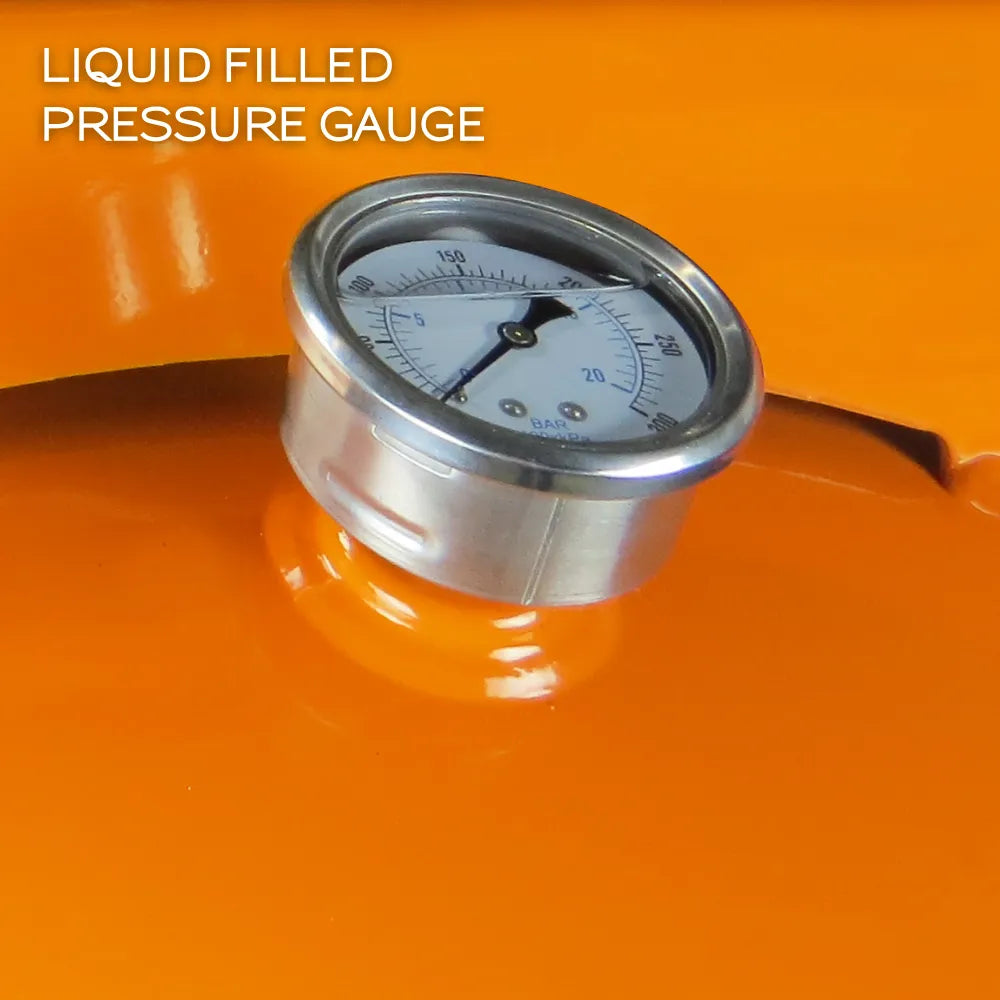 – Large liquid-filled air pressure gauge for better accuracy.