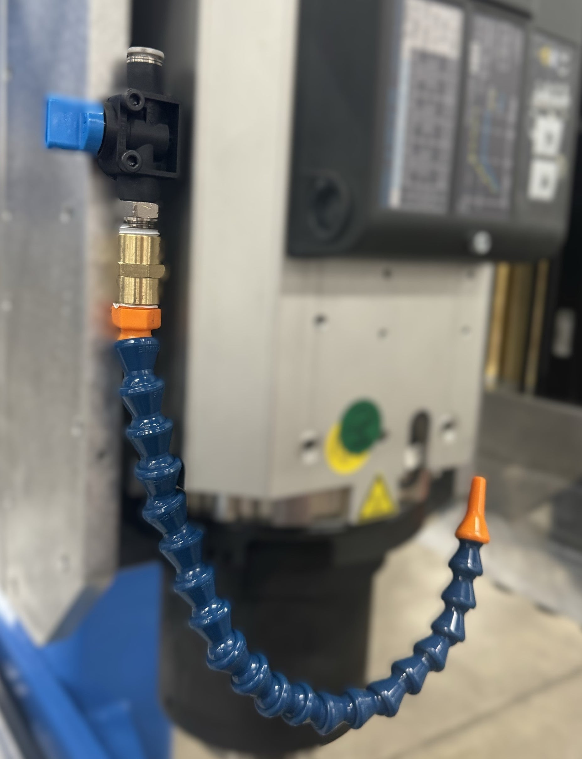 This option allows you to direct compressed air towards the cutting area, assuring chips are moved away from the cutting edges, and thus increasing tool life and cut performance.