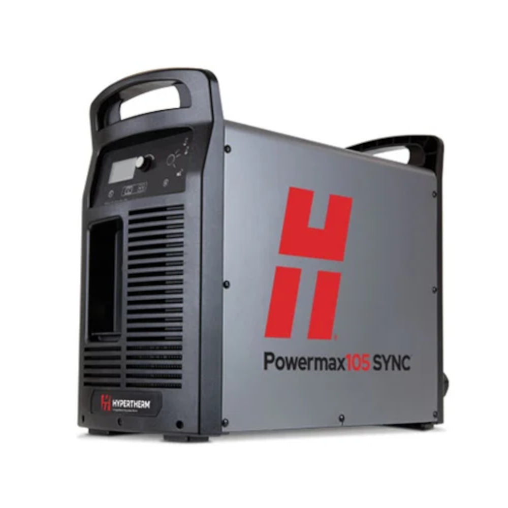 Hypertherm PowerMax 105 SYNC with 25/50 Lead (3 Phase) Powermax SYNC™ series, the next generation of Powermax65®/85/105 systems, is unlike any plasma you’ve seen before. Featuring built-in intelligence and a revolutionary single-piece cartridge consumable, Powermax SYNC simplifies system operation, streamlines consumable inventory, lowers operating costs, and maximizes performance. Best performance on 5/8" and down (Mild Steel)