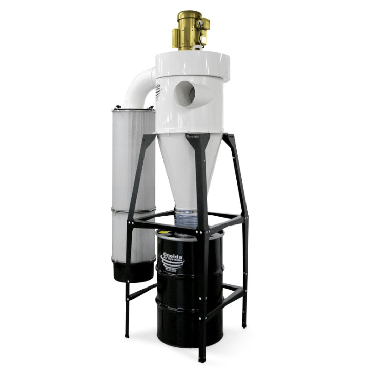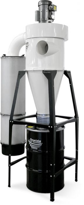 Oneida's 5HP High-Vacuum Dust Collector is one of their most powerful professional dust collection systems and is designed for small to medium sized shops running tools, such as CNC machines, where high static pressure is needed to adequately collect airborne dust. The unique configuration of our High-Vacuum systems make full use of the high-efficiency U.S. motor and cyclone separator to deliver maximum static pressure to multiple tools simultaneously.