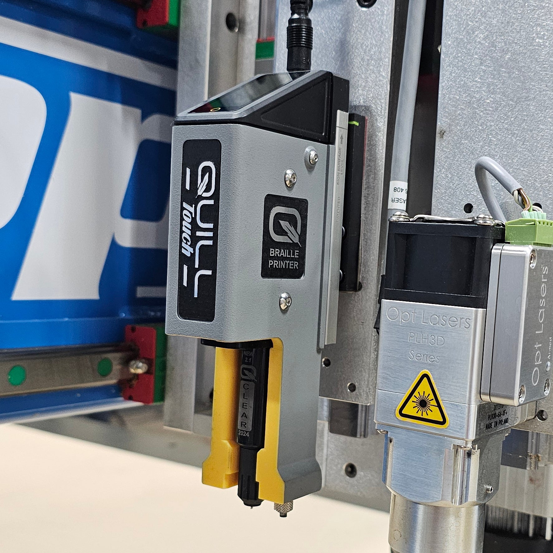 Watch the Quill Braille Printer attachment in action here: Printing ADA Braille with a ShopSabre CNC
